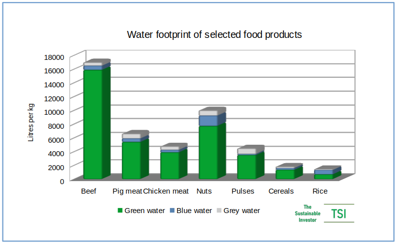 Agriculture, and specifically meat production, has a big environmental footprint. The two main areas are GHG emissions and water usage. In addition, how cattle are fed can have important implications for their health and the use of antibiotics in their rearing.
