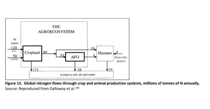 And remember, very little of the nitrogen we apply ends up doing us any good. It was estimated that globally we apply some 170 million tonnes of nitrogen to our soils. Of this 120 million tonnes is from nitrogen fertiliser and biological nitrogen fixing crops such as soybeans. The other 50 million tonnes comes from crop residues and manure. Of that 120 million tonnes, only 49 million tonnes makes its way into our food, the rest goes into our atmosphere, and water systems. And, if we just consider nitrogen fertiliser, under half makes it to the plants we are trying to help.