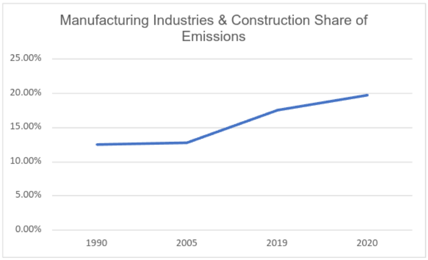 … the construction industry has largely remained unchanged since the early 2000s and hence its share of emissions has actually been rising.