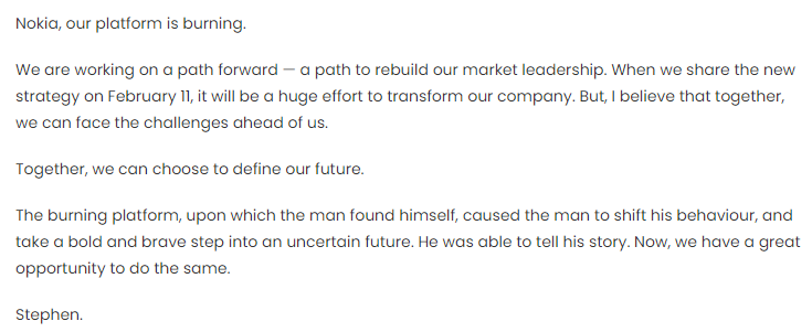 Given this, your selected decision is not just a nice to have, it's a commercial imperative. Doing nothing could be your Nokia “burning platform” moment.
