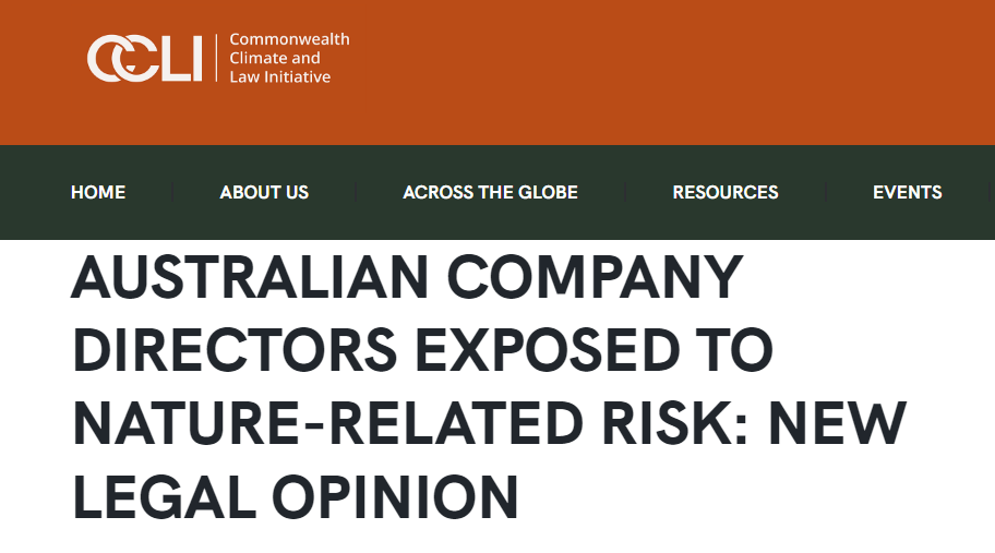 We have known for a while that in many countries climate related risks should be considered by company directors. Now, in an Australian legal opinion commissioned by global climate/nature investment and advisory firm Pollination, in collaboration with the Commonwealth Climate and Law Initiative (CCLI) directors also have a similar obligation around nature related risks.