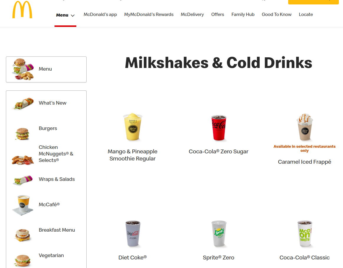Here is a screenshot of the McDonald's online menu today: