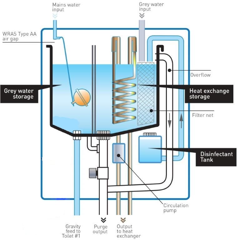Reducing the burden on treatment facilities, and hence reducing the need for investment, can also come from the commercialisation of grey water systems where water is collected and reused from showers and sinks in, for example, toilet flushes where the water does not need to be potable. These can be commercial or residential and are being explored in water stressed countries such as India. They can also be used for garden irrigation and, with the right local treatment technologies, for agricultural irrigation too. In addition the heat can also be recovered from waste water in a grey water system, referred to as a greywater recycling heat recovery system.