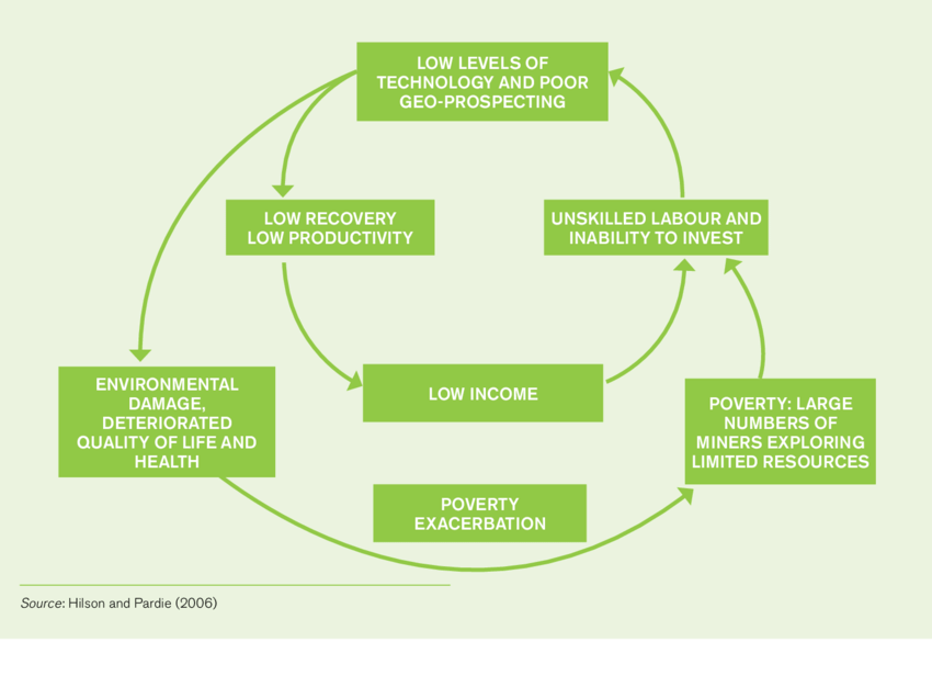Major challenges are that rights are uneven and access to financing is lacking. Artisanal miners are often deemed illegal due to policy decisions. The phrase itself is inappropriate insofar as most miners are not corrupt, they simply gravitate to what work is possible while trying to increase their dignity through work. Being illegal increases the vulnerability of miners to corruption, unsafe conditions and poverty. Lack of financing access results partially because the work is often deemed illegal, but more broadly because a standards driven investment marketplace with defined best practices has not matured.