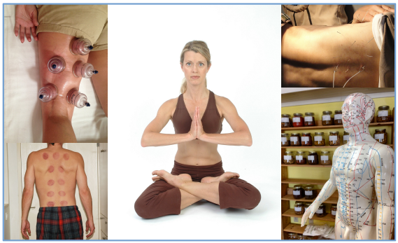 - Cupping: applying cups to specific spots with suction (often created by putting a flame into the cup before applying) effectively drawing fluid into the area. There is not enough research to draw firm conclusions about its efficacy but all I can say is it has helped me!