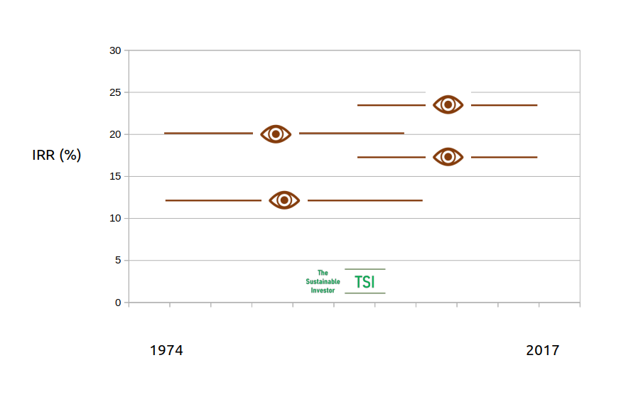 A 2019 paper from University of California researchers Barber, Morse and Yasuda found that the median IRR for private equity VC and growth impact funds was 6.4 percent compared with the median IRR for impact-agnostic VC and growth funds at 7.4 percent.