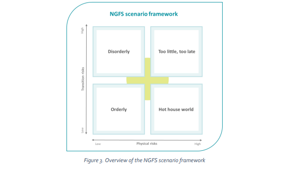 And 95% of firms surveyed use scenarios to assess the financial impact of climate change. The most commonly used scenarios for transition risk are those from the Network for Greening the Financial System (NGFS). These are currently: an orderly transition, a disorderly one, Too-Little-Too Late, and what is called the Hot House.