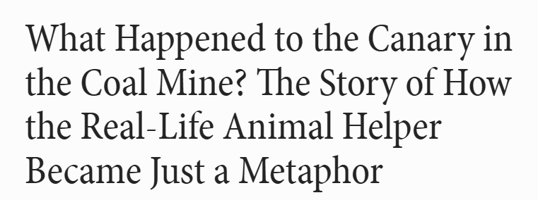 Up until surprisingly recently (1986 in the UK) it was traditional for miners to carry a canary with them. The risk they were looking to avoid was carbon monoxide poisoning. Because carbon monoxide is clear and odorless, miners needed a method for detecting it before it killed them. A canary’s collapse let workers know there was poisonous gas in the air and gave them some warning time to evacuate. Obviously not great for the canary.
