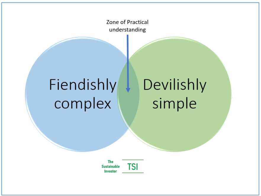 Our aim at The Sustainable Investor is to get the balance between the complex and the simple appropriate for the topic being discussed to enable you to have expert conversations and ultimate make practical decisions.